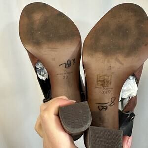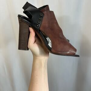 Free People Picture This Brown Black Leather Heel Sandal Wood Block Heel 39/9