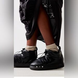 Keep your feet wrapped in warmth with these puffer-style bootie slippers from FP Collection.