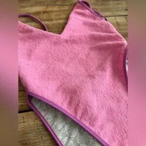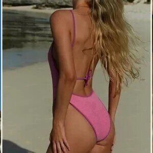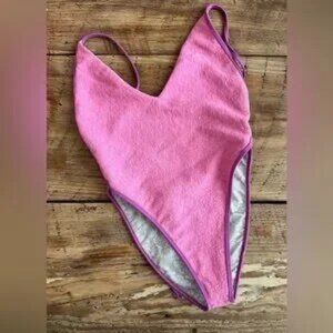 Stylish pink one piece. Deep V-neck design. Perfect for beach days. Tried in but never worn like new! Azalea pink high cut leg and low back