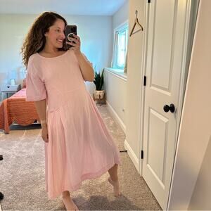 I love this gorgeous Free People pink cotton gauze short sleeve maxi dress