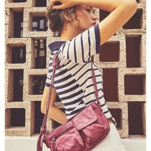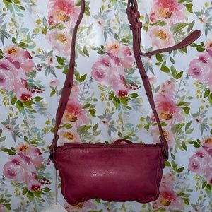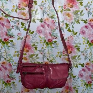Stylish pink crossbody bag. Features multiple pockets. Perfect for everyday use.