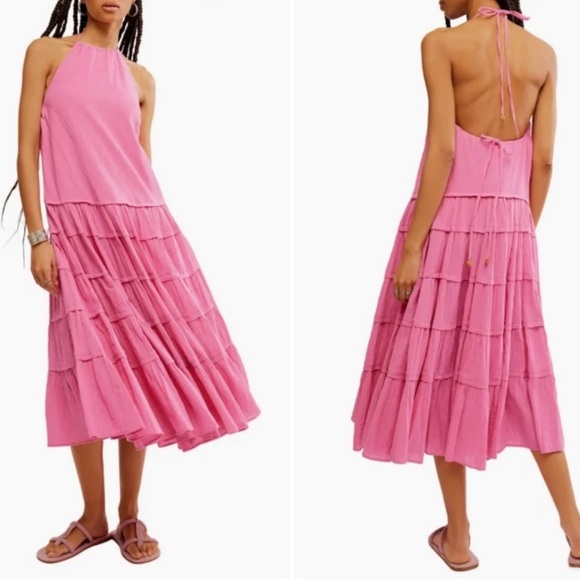 Free People backless design with halter neck. Flowy tiered skirt. Perfect for warm days.