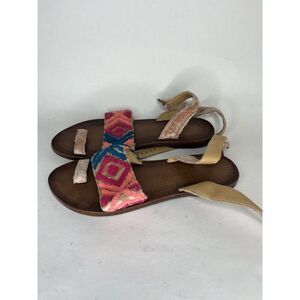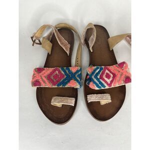 Free People Pink Fabric Leather Aztec Pattern Toe Strap Sandals Women 39EU/8M US