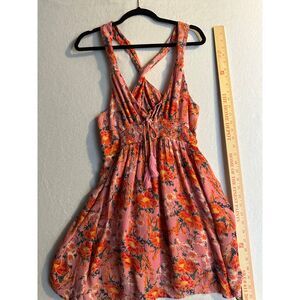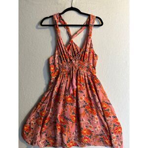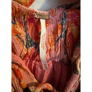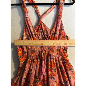 🌷 Free People Pink Floral Smocked Boho Mini Dress w/ Tassel Tie - Sz M