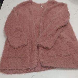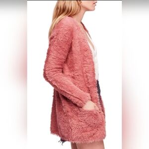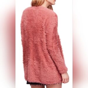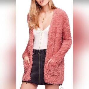 Embrace warmth and style with this plush pink cardigan from Free People. Its open-front design and fluffy texture make it an ideal choice for casual outings or cozy lounging. The mid-hip length and full-length sleeves ensure a comfortable fit for any occasion.