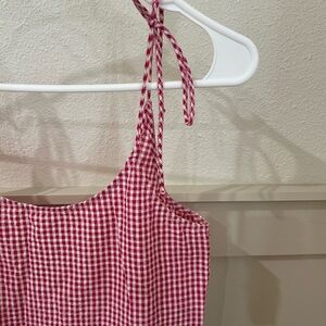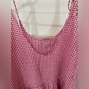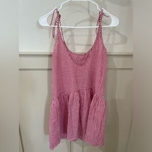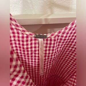 Free People Pink Gingham Mini Dress Bow Tie Straps 100% Cotton