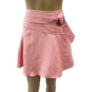 Free People Pink Higher Ground A-Line Skirt Linen Blend Flowy Belted Waist M*