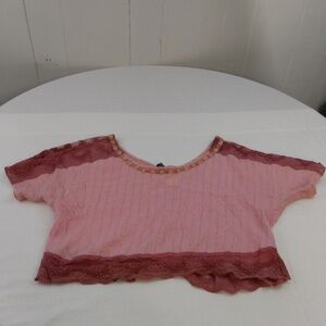 Free People Pink Laced Trimmed Flowy Crop Top