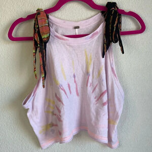 Free People Pink Light Tie-Dye Koa Ribbon Tie Cropped Tank size S