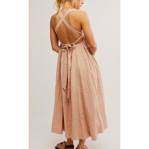 Elegant pink midi dress. Halter neckline. Flowing silhouette. Perfect for any occasion.