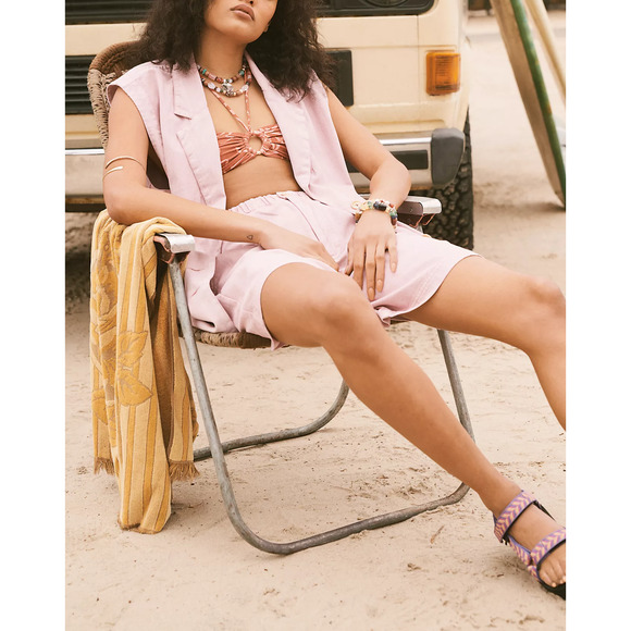 Free People Pink On The Path Short Suit Set Size XS: sleeveless blazer and coordinating relaxed shorts in a breezy, side pockets, sutton closures, shorts high-rise fit, longline silhouette, zip fly and button closure, side pockets.