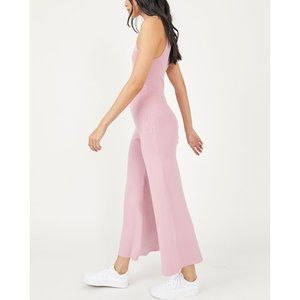 Stylish one-shoulder jumpsuit. Soft pink color. Perfect for casual outings. Worn twice, bought new with tags. Please see manufacturer’s website for all sizing guides and info not listed here.