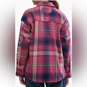 Free People Pink Plaid Utility Jacket