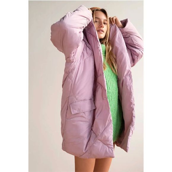Stylish pink puffer jacket. Cozy and warm. Perfect for cold weather.