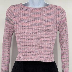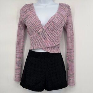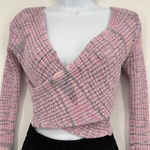 Free People Pink Ribbed Textured Wrap Front Sweater Top XS