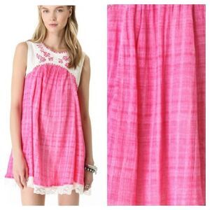 Free People‎ Pink Strawberry Fields Embroidered Mini Dress