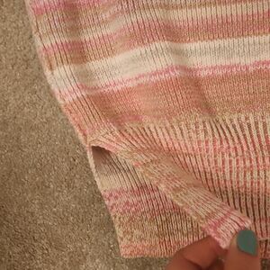Pink striped sweater with longer sleeves (colors much brighter in person).