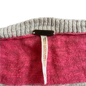 Worn once Free People pink & tan stripe cotton knit tunic top. Deep v-neck or can be worn as off the shoulder. Short sleeve and lightweight.