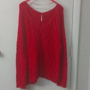 Free People Pink V- Neck Sweater S Cozy Casual Dopamine Boho Barbie Classic
