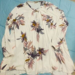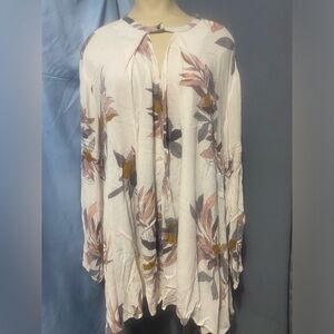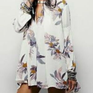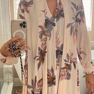 ( with a small detail marked in two photos ) Embrace effortless style with this Free People sundress, designed in a soft pink shade perfect for casual or resort wear. The V-neckline and long bishop sleeves add a touch of elegance, while the lightweight fabric ensures a comfortable fit. Its flowing silhouette and delicate floral pattern make it a standout piece for any relaxed occasion.