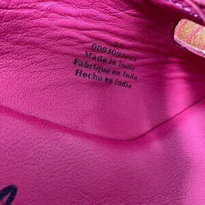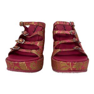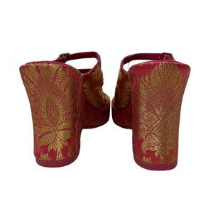Elegant pink wedges with gold floral design. Adjustable straps for comfort. Perfect for any occasion.