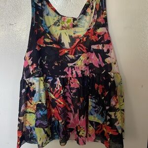 Free People Pink/Yellow Tiered Sleeveless Tank Top Small Oversized