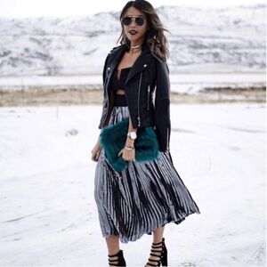Free People Piper Pleated Midi Dress Black Silver OB555630