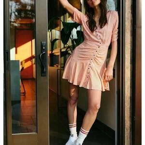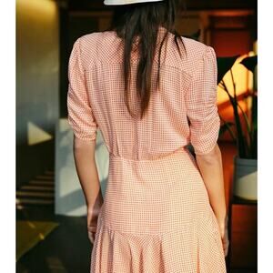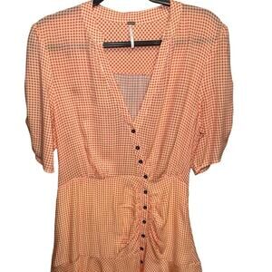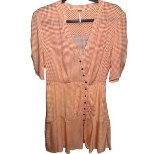 Free People Pippa Dress Asymmetrical Gingham Plaid Tiered Mini Orange Size Mediu