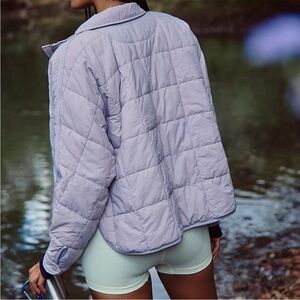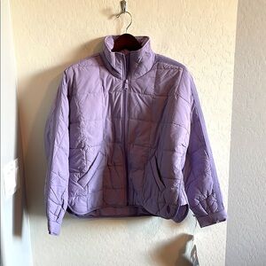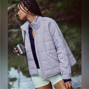 Stylish quilted jacket. Features a full zip front. Cozy and warm. Perfect for chilly days.
