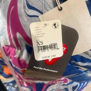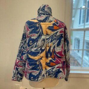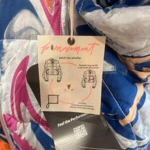 Free People Pippa Printed Packable Puffer Jacket Blue Multi NWT Size X Small
