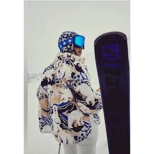 Free People Pippa Printed Packable Puffer Jacket Small Polar Bear NEW