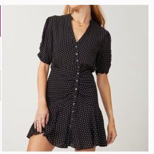 Free People - Pippa Short Sleeve Polka Dot Mini Dress - Black- Size L