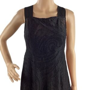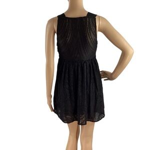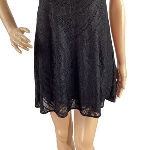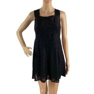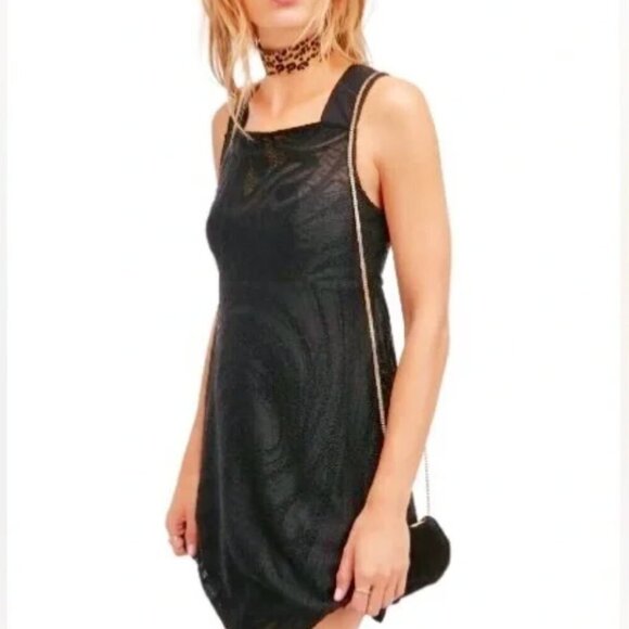 Free People Placed Lace Mini Fit Flare Slip Dress Black Size S