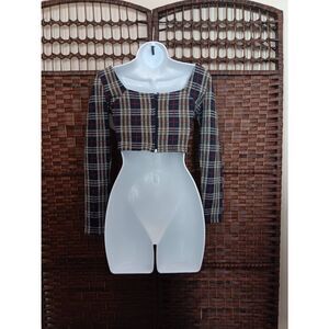Free People Plaid Bustier Long Sleeve Crop Top