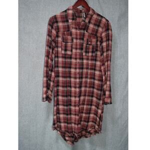 Free People Plaid Button Front Flannel Shirt Dress Size Small