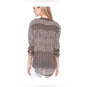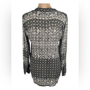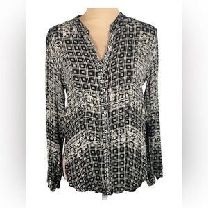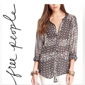 Free People Boho Flowy Top Tunic Black Tan Geometric Peasant sz XS Long Sleeves