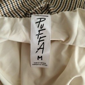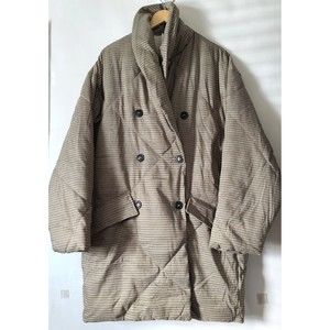 Free People Plaid Dre Cocoon Puffer Jacket Oversized Sz M Brown Button Frnt NWOT