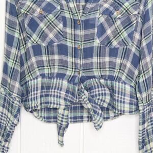 Tags FP Free People raw edge long sleeve blue plaid button crop top small trendy crop fall winter basic western tie casual nwt