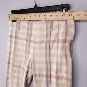 Free People Plaid Flare Pants Womens 0 Linen Blend Low Rise Retro Hippie Boho