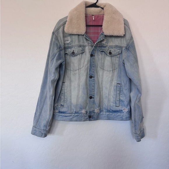 Free People Plaid Lined Sherpa Trucker Jacket size m