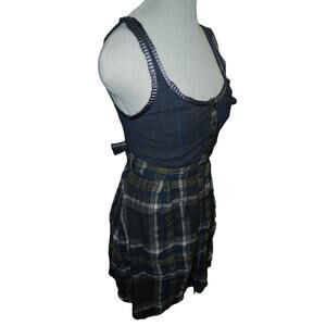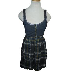 Free People Plaid Mini Dress – Button Front Denim Bodice, Grunge Cottagecore 4