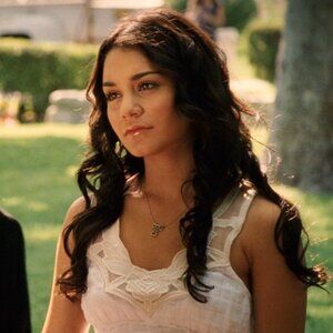 Free People Plaid Sparkle Gauze Tunic in White as seen on Gabriella Montez in High School Musical 3 (2008). Same style, brand and color. Slightly sparkly, but it doesn't show up well on camera. 100% cotton.
