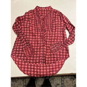 Free People Plaid Miles Tuxedo Shirt Size S in Pink Combo MSRP$128 NWT F20T07506