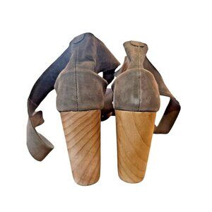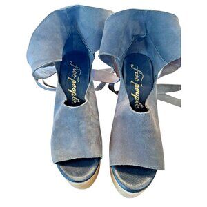 Free People Platform Heels Wood Open Toe Ankle Wrap Gray Suede Size?
