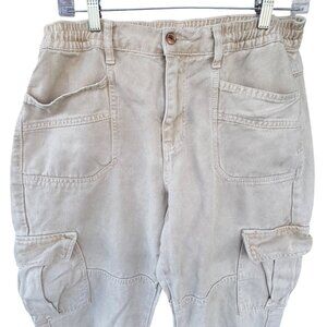 Free People Platoon Cargo Jogger Pants Women's Medium Beige Relaxed Taper