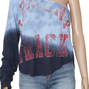 Condition : This item is Tag, label & Tag attached. Measurement details Size - Extra Large(loose style) Bust - 20"Across (Laying flat) Length - 22"approx Color - Blue Fabric - Cotton Item details One Shoulder. Long Sleeve. Tie Dye Print on Top. Faded screen print on front. Asymmetrical one arm Design Raw edge. 42195