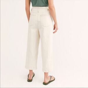 Free People Pleated Carrot Pants size 6 New with Tags in Ivory. Elevate your laid back style by sporting this casual pair of ivory colored pants with a fresh cropped hem and a delicately pleated waistband. Button fly - Pleated waistband - Side slash pockets - Back patch pockets - Fading - Cropped hem - Measurements taken laying flat. Approx. 14.5” rise, 23.5” inseam, 14” Waist. 98% Cotton 2% Elastane.