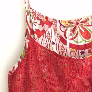 Free People Pleated Hem Floral Dress Womens Size S Red Overlay Knit Crochet