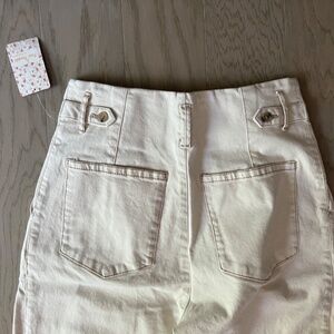 Free People Pleated Wide Leg Cropped High Waisted Off White Jeans Size 4 BNWT