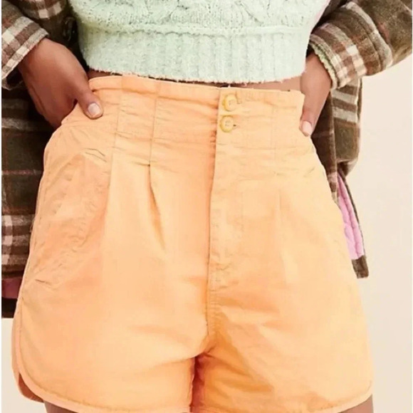 Free People Pleated front Orange Cotton Shorts Summer Vacation Size